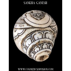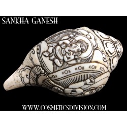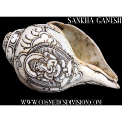 CONCHIGLIA -TROMBA SCOLPITA A MANO CON RAPPRESENTAZIONI DI GANESH.